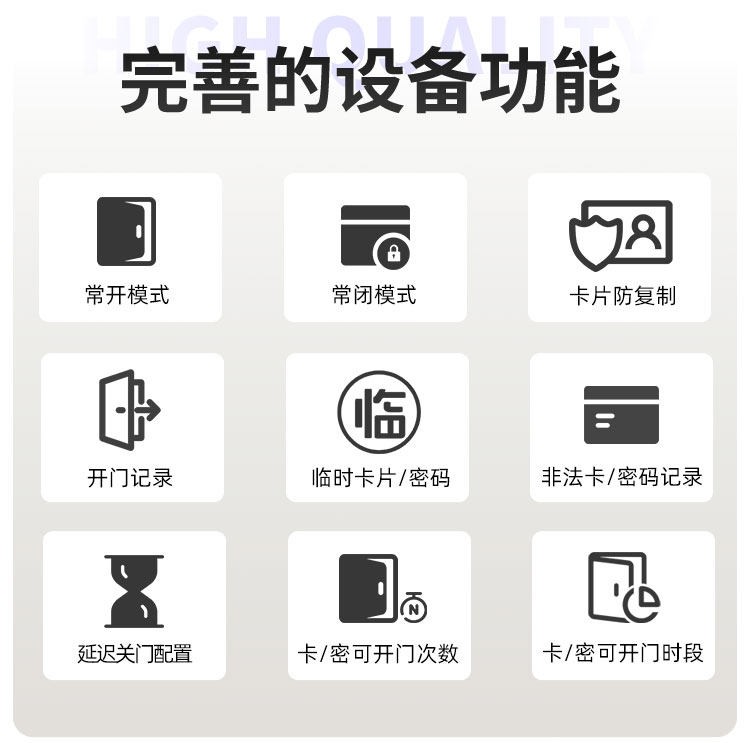 舟山这款智能门锁提供室内门锁和防盗门锁两种选择,其中室内门锁尺寸为 2806521mm,适配 5050 锁体;防盗门锁尺寸为 3657021mm,适配 6068 锁体,可满足不同场景的安装需求。它采用铝合金一体成型搭配钢化玻璃面板打造,兼具坚固耐用的品质与简洁美观的视觉效果。门锁支持蓝牙无线通讯,解锁方式丰富多样,密码、卡片、蓝牙、钥匙四种方式随心选择,满足不同使用习惯与应急需求。其工作温度范围为 - 20~70℃,能适应多数地区的气候条件,采用碱性电池供电,安装更换便捷,是兼具安全性与实用性的门锁选择。